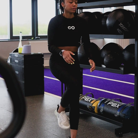 Women's cropped Long Sleeve made comfortably out of Polyamide/ elastane. With thumb openings for thumbs. Logo in the front, nothing in the back